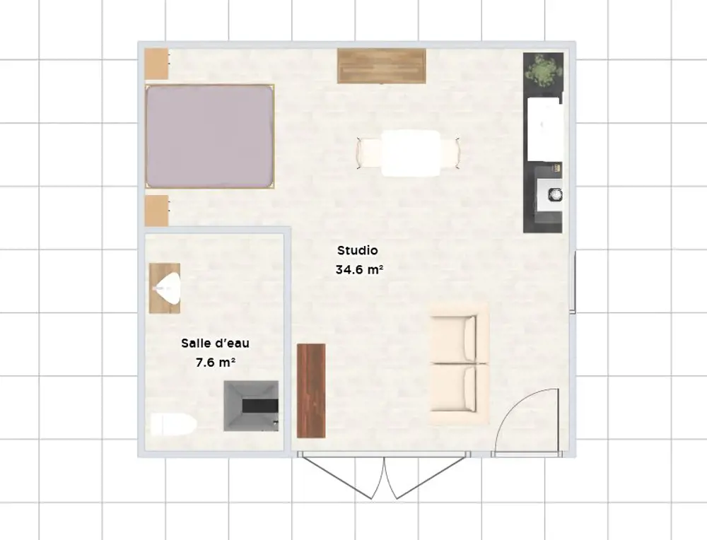 D'une surface de 35m2, le logement comprend: